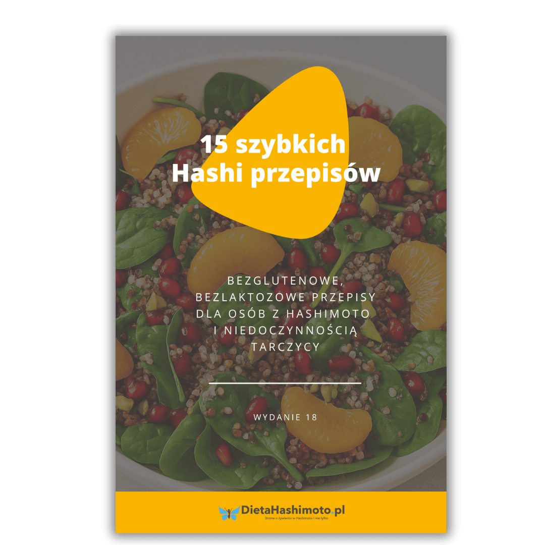 Znajdziesz w nim 15 propozycji na śniadania, obiady, przekąski, kolacje i desery odpowiednie dla osób z Hashimoto, niedoczynnością tarczycy i insulinoopornością.